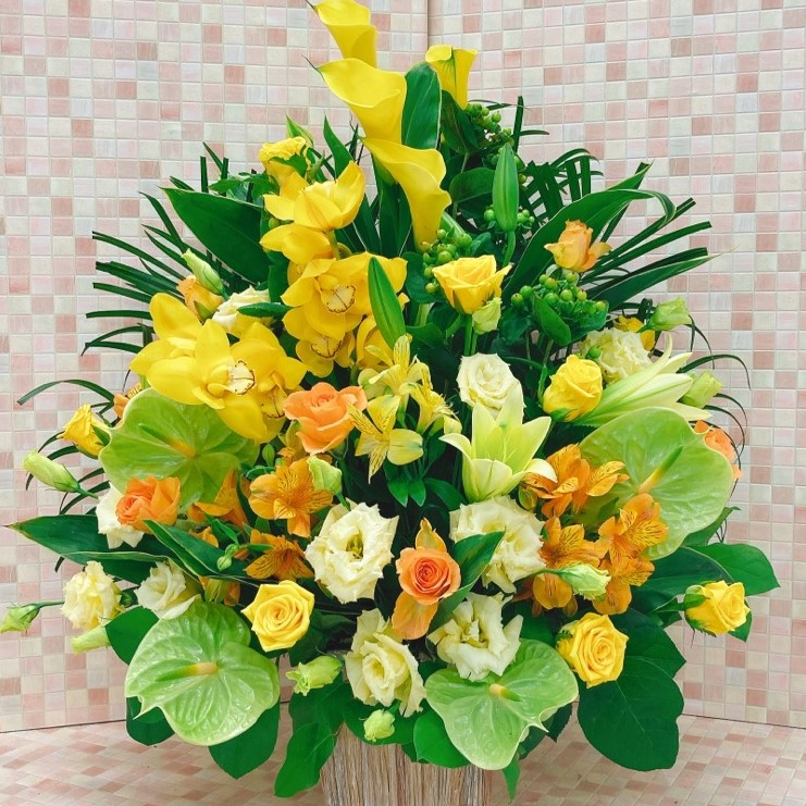 御祝用アレンジメント12694-0002 2020.08.26 実例:アレンジメント 画像情報 商品分類アレンジメント:ワンサイド(三方見) 色黄色、オレンジ、黄緑 サイズ高さ75cm x 幅60cm 使用してる花材カラー、シンビジューム、ユリ 、バラ、トルコキキョウ、アンスリューム、ヒペリカム、ドラセナ、ロベ 、アルストロメリア、レモンリーフ お勧め用途御祝、誕生日、結婚記念日、パーティ・式典、開店祝い、周年祝い、お礼、など 購入方法 上記の画像のイメージで商品をご希望の方は以下より、お申し込みください。 申込はこちら アルストロメリア, アンスリューム, オレンジ, カラー, シンビジューム, トルコキキョウ, バラ, ヒペリカム, ユリ, 黄緑, 黄色 Tweet Share Hatena Pocket feedly Pin it RSS 結婚祝い用花束11599-0002 飲食店の開店祝い用スタンド花12683-0002