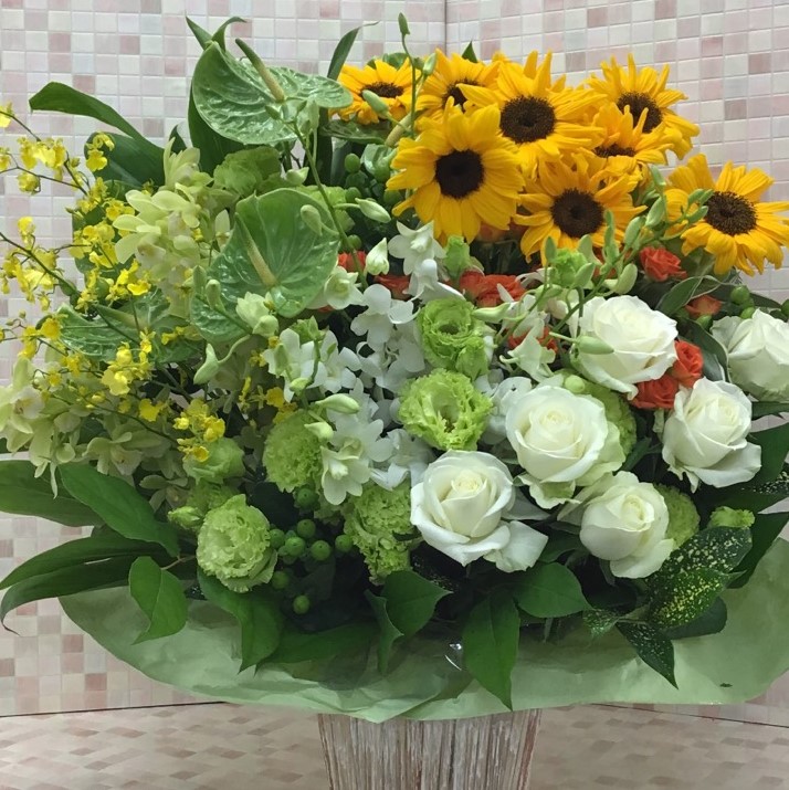 御祝用アレンジメント17567-0001 2020.08.30 実例:アレンジメント 画像情報 商品分類アレンジメント:ワンサイド(三方見) 色黄色、白、黄緑 サイズ高さ90cm x 幅70cm 使用してる花材ヒマワリ、バラ、オンシジューム、デンファレ、シンビジューム 、トルコキキョウ、アンスリューム、ヒペリカム 、ドラセナ 、ゴット、レモンリーフ お勧め用途御祝、周年祝い、開店開業祝い、パーティ・式典、移転祝い、誕生日、結婚記念日、お礼、など 購入方法 上記の画像のイメージで商品をご希望の方は以下より、お申し込みください。 申込はこちら アンスリューム, オンシジューム, シンビジューム, デンファレ, トルコキキョウ, ドラセナ, バラ, ヒペリカム, ヒマワリ, 白, 黄緑, 黄色 Tweet Share Hatena Pocket feedly Pin it RSS 命日用アレンジメント17496-0001 2020父の日用アレンジメント17638-0001