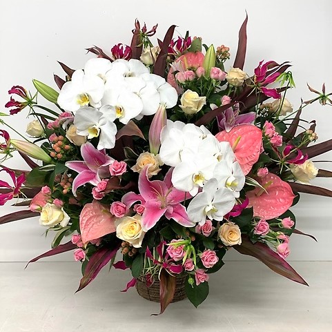 誕生日祝い用アレンジメント17969-0001 2020.08.24 実例:アレンジメント 画像情報 商品分類アレンジメント:ワンサイド(三方見) 色白、薄ピンク、濃いピンク、クリーム サイズ高さ85cm x 幅70cm 使用してる花材コチョウラン、ユリ、グロリオサ、バラ、トルコキキョウ、アンスリューム、アルストロメリア、ヒペリカム、ドラセナ お勧め用途誕生日、パーティ・式典、お祝い、結婚記念日、周年祝い、など 購入方法 上記の画像のイメージで商品をご希望の方は以下より、お申し込みください。 申込はこちら アンスリューム, クリーム, グラリオサ, コチョウラン, トルコキキョウ, バラ, ヒペリカム, ユリ, 濃いピンク, 白, 薄ピンク Tweet Share Hatena Pocket feedly Pin it RSS 御祝用胡蝶蘭12668-0002 誕生日用アレンジメント17983-0001
