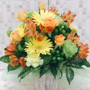 開店祝い用アレンジメント12730-0002 2020.09.07 実例:アレンジメント 画像情報 商品分類アレンジメント:ワンサイド(三方見) 色黄色、赤、黄緑 サイズ高さ25cm x 幅20cm 使用してる花材ヒマワリ、カーネーション、アンスリューム、ヒペリカム、レモンリーフ お勧め用途お祝い、開店祝い、お誕生日、結婚記念日、周年祝い、歓送迎、お礼、など 参考価格5,000円(税別) 【開店祝い】の札をお付けいたしました。 購入方法 こちらの画像イメージでの商品をご希望の方は、以下フォームより、お気軽にお問い合せくださいませ。 【ご注文・お問い合せ】はこちら 関連の【実例・ギャラリー】はこちら ↓↓↓ 2020.09.01 開店祝い用アレンジメント18035-0001 花材:バラ、トルコキキョウ、カーネーション用途:お見舞い商品:アレンジメントサイズ:H50 W35 D30cm こちらの画像に関するご要望は、「実例・ギャラリーからのご注文・お問合せフォームコンタク… 2020.09.07 お誕生日用アレンジメント12731-0002 花材:バラ、トルコキキョウ、カーネーション用途:お見舞い商品:アレンジメントサイズ:H50 W35 D30cm こちらの画像に関するご要望は、「実例・ギャラリーからのご注文・お問合せフォームコンタク… アンスリューム, カーネーション, ヒペリカム, ヒマワリ, 赤, 黄緑, 黄色 Tweet Share Hatena Pocket feedly Pin it RSS お供え用アレンジメント12727-0002 開設祝い用観葉植物12680-0002