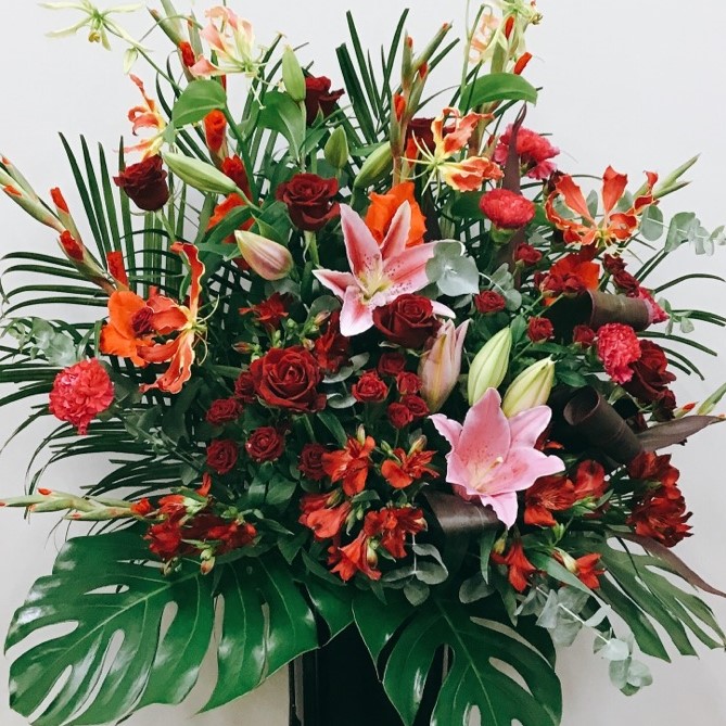 開店開業祝い用スタンド花12650-0002 2020.08.20 実例:スタンド花 画像情報 商品分類お祝いスタンド花 色赤、ピンク、オレンジ、 サイズ高さ180x幅80 使用してる花材ユリ、バラ、カーネーション、SPバラ、グラリオサ、グラジオラス、ユーカリ、ロベ、モンステラ、 お勧めの用途御祝、開店開業祝い、パーティ、出演・公演祝い、誕生日、式典、など 購入方法 上記の画像のイメージで商品をご希望の方は以下より、お申し込みください。 申込はこちら SPバラ, オレンジ, カーネーション, グラジオラス, グラリオサ, バラ, ピンク, ユリ, 赤 Tweet Share Hatena Pocket feedly Pin it RSS お供え用アレンジメント10962-0002 誕生日用アレンジメント12666-0002