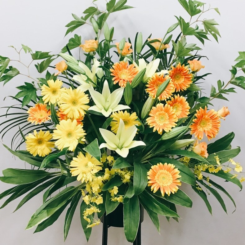 飲食店の開店祝い用スタンド花12643-0002 2020.08.19 実例:スタンド花 画像情報 商品分類お祝いスタンド花 色黄色、オレンジ、 サイズ高さ180x幅80 使用してる花材ユリ、ガーベラ、バラ、オンシジューム、ドラセナ、キイチゴ お勧めの用途開店開業祝い、御祝、出演・公演祝い、パーティ、誕生日・式典、など 購入方法 上記の画像のイメージで商品をご希望の方は以下より、お申し込みください。 申込はこちら オレンジ, オンシジューム, ガーベラ, キイチゴ, バラ, ユリ, 黄色 Tweet Share Hatena Pocket feedly Pin it RSS 公演祝い用スタンド花12653-0002 誕生日用アレンジメント17986-0001