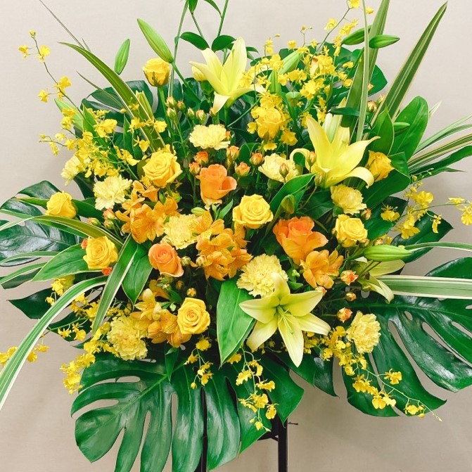 ユリ、バラ、オンシジューム、SPバラ、アルストロメリア、ドラセナ、モンステラ、ニューサイラン